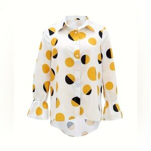 Vibrant Polka-Dot Print Long Bell Sleeve Blouse - Casual, Relaxed Fit