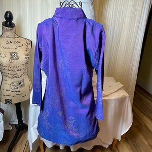 Add a splash of color to your wardrobe with this vibrant purple tunic. Features intricate embroidery for a stylish touch.