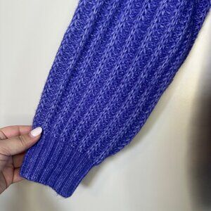 Vibrant Purple Fuzzy Textured Ribbed Sweater Long Sleeve Crewneck -NEW
