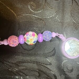Brighten up your accessories with this vibrant beaded badge holder. Featuring a mix of purple and multicolor beads, it's a stylish choice for any outfit.