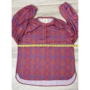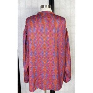 Elevate your wardrobe with this vibrant purple and orange blouse. Perfect for any occasion, this top offers both style and comfort.