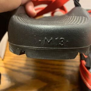 Eye-catching sandals with bold red and black straps. Ideal for casual outings.men’s size 13 great for hiking, waterproof, running, boating, kayaking, or just everyday activities. In new condition.