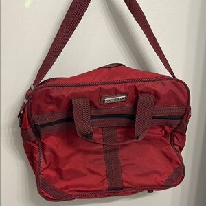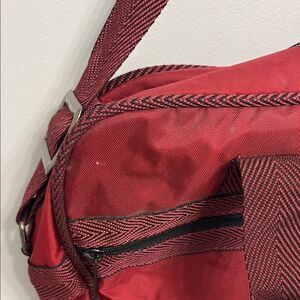 Vibrant Red Duffel Bag with Synthetic Fabric and Zipper Closure