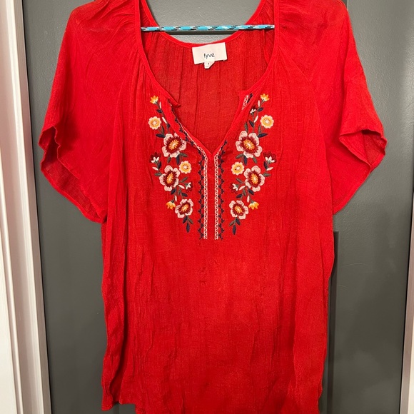 Vibrant Red Floral Embroidered Blouse by Fyve. Size medium.