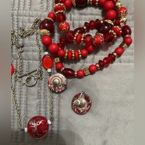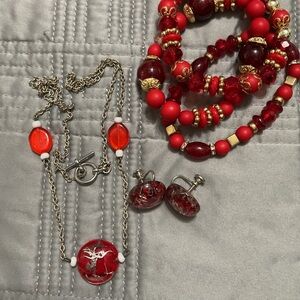 Vibrant Red / Gold & Silver Jewelry Set (some look vintage?) Screw Earrings