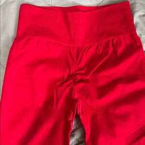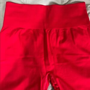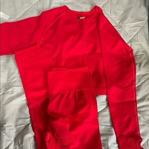 Vibrant Red Workout / Yoga / Pilates set. Long sleeve Crop top w thumb holes. Leggings are butt scrunch.