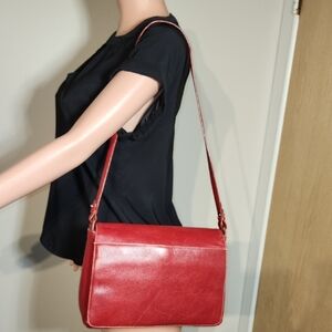 Vibrant Red Leather Shoulder Bag with Structured Design