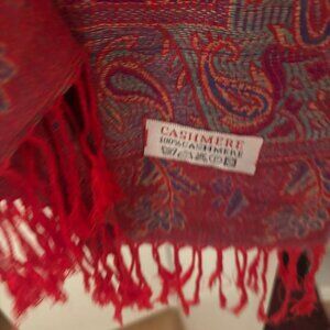 Vibrant Red & Purple Paisley Cashmere-Blend Scarf – Excellent Condition