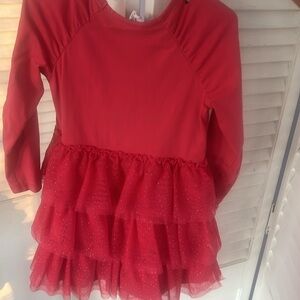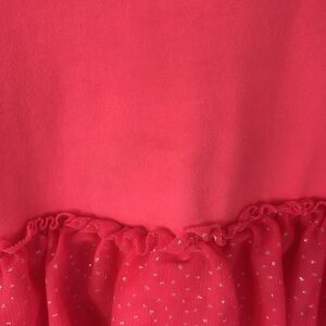 Stylish pink dress with playful sliver sparkly ruffle layers. Long sleeve and super soft material, Ideal for any event. Small mark on the front, hard to see but wanted to make sure it was shown. (See pictures)