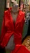 Elegant red satin blazer pant set with a sleek design. Perfect for adding a pop of color to any outfit.