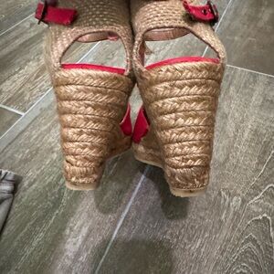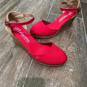 Vibrant Red Satuna Limited Edition Espadrille Wedges with Tan Jute Heel