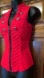 Eye-catching red sleeveless vest with a zip-up front and distinctive button embellishments. Ideal for stylish layering.