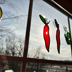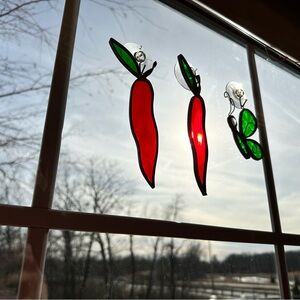 Vibrant Red and Green Chili Pepper Stained Glass Art Suncatcher