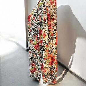 Vibrant Red and Orange Long Sleeve Animal Print Tunic