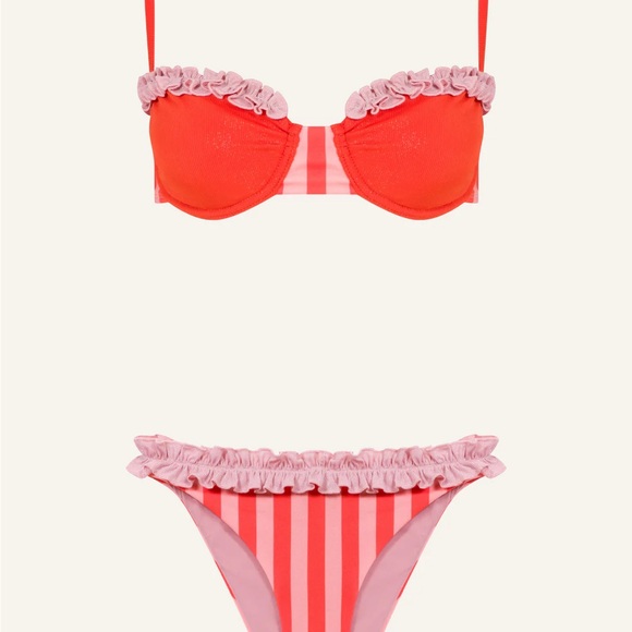 Make a splash with this vibrant bikini set featuring playful ruffles. Perfect for beach days. Worn once.
