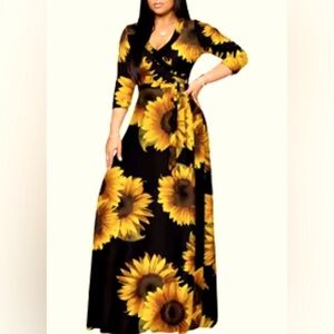 This NWOT Vibrant Sunflower Print Crew Neck Loose Fit with Tie Belt, 3/4 Sleeve Dress (thin lightweight material) is in Exceptional Used Condition (EUC): Previously lovingly cared for; but this is a preloved (used) item, some normal and minimal wear is expected. Depending on device used, color may vary. Review pics as they’re part of the description. Sold as is, no refunds. All auction bids/wins are final, no cancellations.