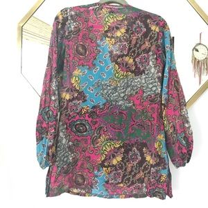 Tunic top with vibrant colors and patterns • pretty detailing along neck • perfect with leggings and booties •