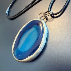 Vibrant Unique Artisan Blue Fused Glass Pendant
