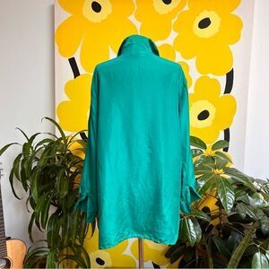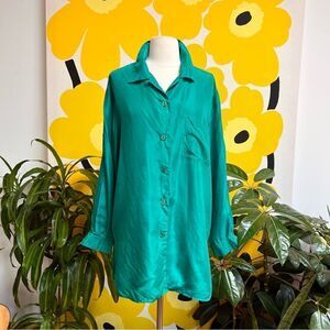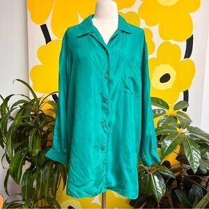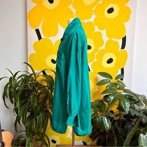 Vibrant Vintage 100% Silk Kelly Green Diane Von Furstenberg Boyfriend Button Up