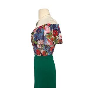 Vibrant Vintage 70s Flower Power Ruffle Could Shoulder Flouncy Floral Print Top