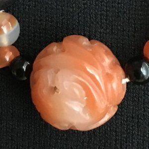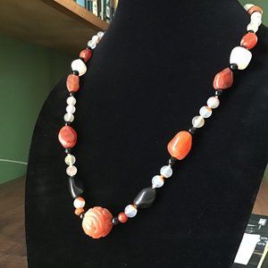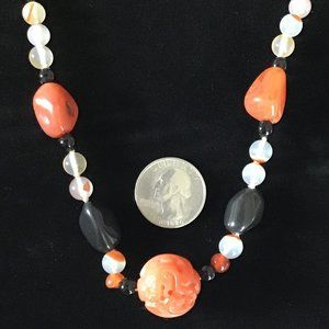 This vibrant vintage polished bead/stone necklace has some weight to it. It is beefy!