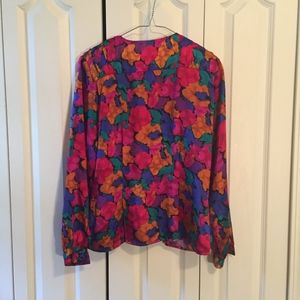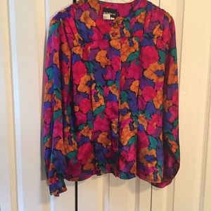 A multicolored blouse. It has an appealing shape. The shirt is in good condition.