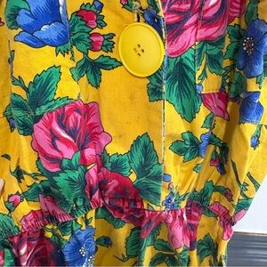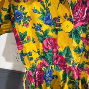 Elevate your style with this vibrant floral vintage midi dress. Featuring a stunning mix of yellow, pink, and blue, it's perfect for any occasion.