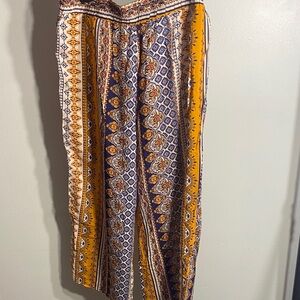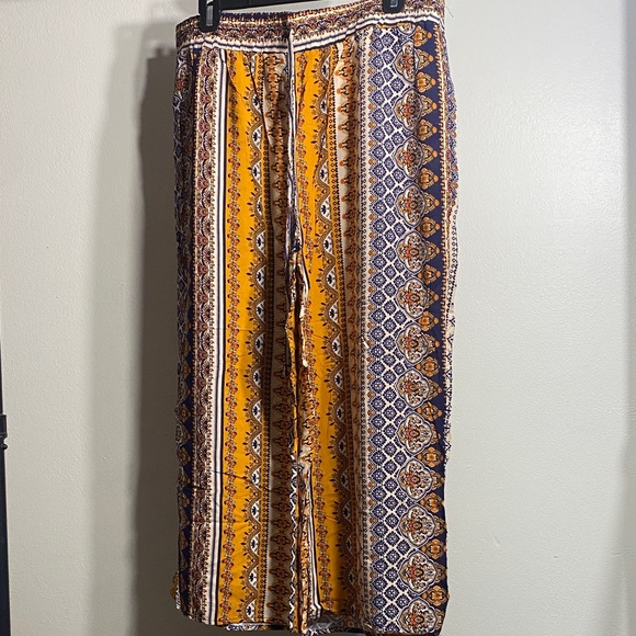 Step out in style with these vibrant wide-leg pants. Featuring a striking mix of orange and blue patterns, they are perfect for any casual outing. Pair with a simple top for a standout look.