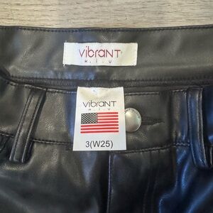 Vibrant Women’s Vegan Leather Wide Leg High Waisted Black Pants Size 25