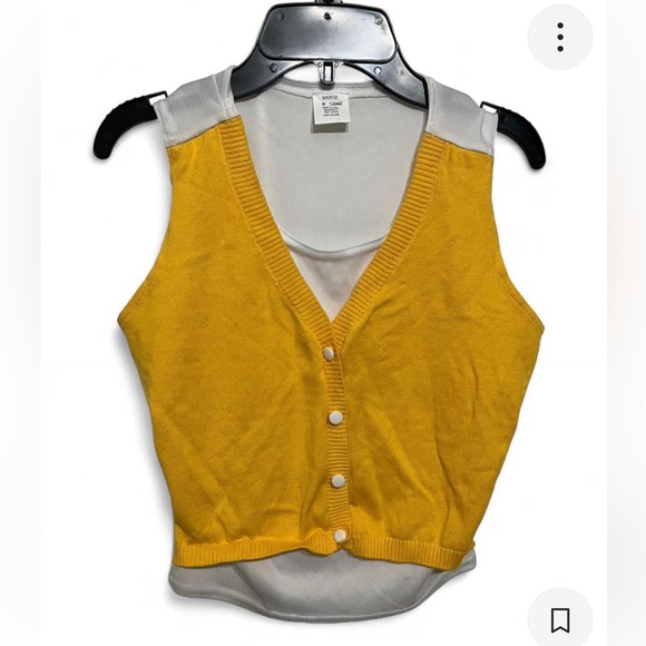 Add a pop of color to your wardrobe with this vibrant yellow button-up tank top. Ideal for casual outings or a day at the beach.like new .
