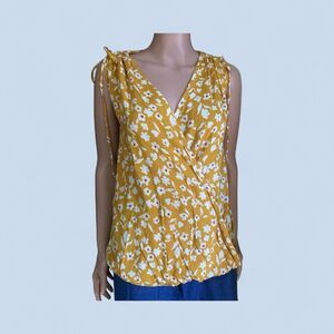 Vibrant Yellow Cap Sleeve Wrap Blouse S