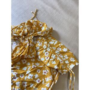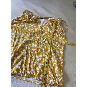 Excellent preowned condition, vibrant yellow color, wrap front design, sleeves have drawstring adjustment, light and flowy fabric, tagged size S, but please See Measurements for Custom Fit. TPS-1