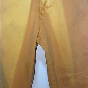 These vibrant yellow straight-leg pants are designed with a high waist for a flattering fit. Crafted from a sturdy cotton material, they offer both durability and stylish. Has some sun damage which adds a real cool distressed look. For anyone who love a good worn in vintage look.