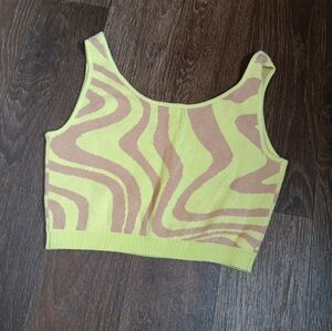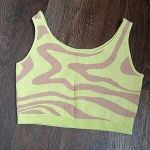 This eye-catching tank top features a vibrant yellow base with a stylish pink pattern, offering a modern and trendy look. Designed with a cropped length and fitted style, it provides a flattering silhouette. The sleeveless design with wide straps ensures comfort and ease of movement, making it perfect for casual outings or active wear.
