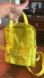 Bright yellow neon backpack with adjustable straps and silver hardware. Features a front zip pocket and top handles. Some minor scuffs but decent overall. f21