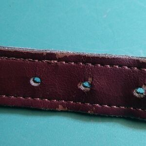 Stylish men's belt featuring a blue base with multicolor triangle patterns. Perfect for adding a touch of color to any outfit.