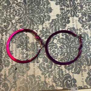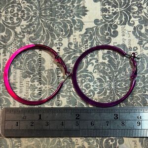 Stylish vibrant pink hoop earrings. Perfect for adding a pop of color. G219
