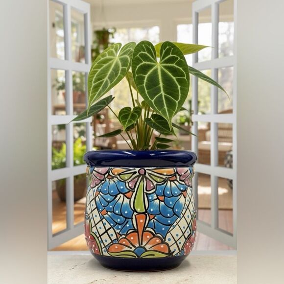 This unique Mexican planter is the perfect home for your medium houseplants, succulents, or flowering plants. The authentic Talavera style brings a touch of traditional Mexican artistry and joyful color to your decor.