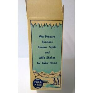 Vintage 1932 original unused pint sized ice cream container. The tops were never closed. Has some creases and age wear. Size is 6" x 3" approximate.