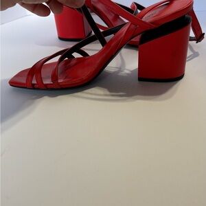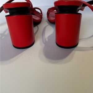 Chic red strappy heels by Vic Matie. Sleek design with a modern touch.
