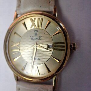 VicencE Swiss Parts 14K Gold Case Unisex Wristwatch