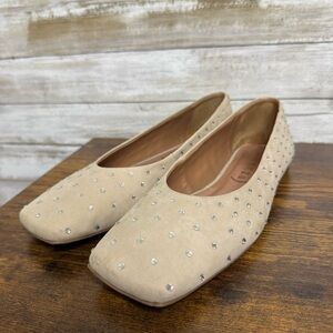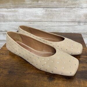 Vicenza Neutral Leather Studded Square Toe Flats Women’s Size 8 US