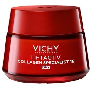 Experience the power of Vichy Liftactiv Collagen Specialist Anti-Aging Day Cream, designed to combat signs of aging such as wrinkles, fine lines, and age spots. This 50ml cream is infused with a blend of collagen-boosting peptides, Vita