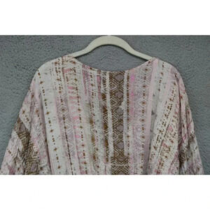 This is a Vici 3/4 Dolman Sleeves Low V-Neck Belted w/Tassels Mini Dress that is a size Medium. It is very Boho or Cottagecore. It is 98% Rayon and 2% Lurex. The Overall Length is 32". In good condition. Very pretty.