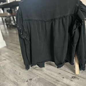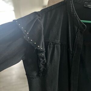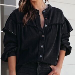 Vici Black Jean Jacket with Studded Shoulder Embellishments
