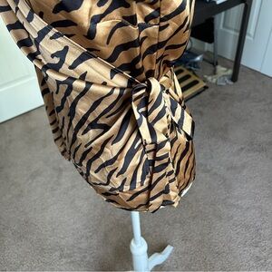 Vici Tan Black Zebra Print Satin Wrap Long Sleeve Side Tie Blouse Size Medium