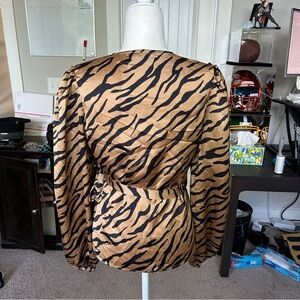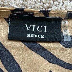 Vici zebra print blouse, Vici wrap blouse medium, Vici satin blouse zebra, Vici animal print wrap top, Vici long sleeve side tie blouse, Vici silky wrap shirt, Vici tan black blouse, Vici statement blouse medium, Vici puff sleeve wrap top, Vici chic work blouse, Vici date night top, Vici zebra animal print shirt, Vici fall fashion blouse, Vici trendy wrap blouse, Vici satin workwear top, Vici silky animal print blouse, Vici wrap blouse
