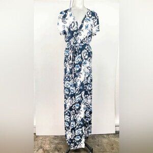 Vici Blue And White Floral wrap Maxi Dress V neck Small