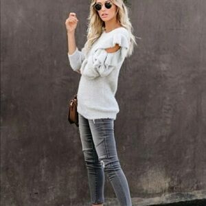 Blue Moon fuzzy cozy boho ruffled open shoulder Vici sweater