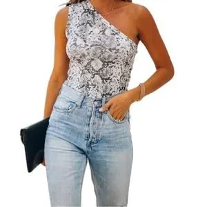 Vici Boa Ribbed One Shoulder Knit Tank Python Pattern